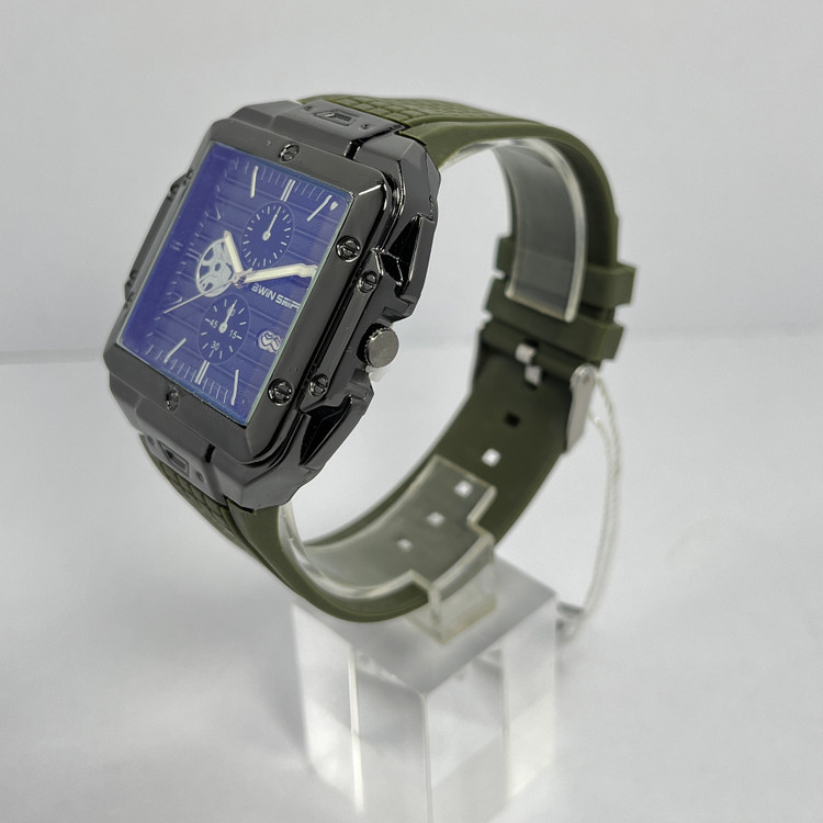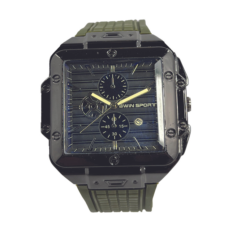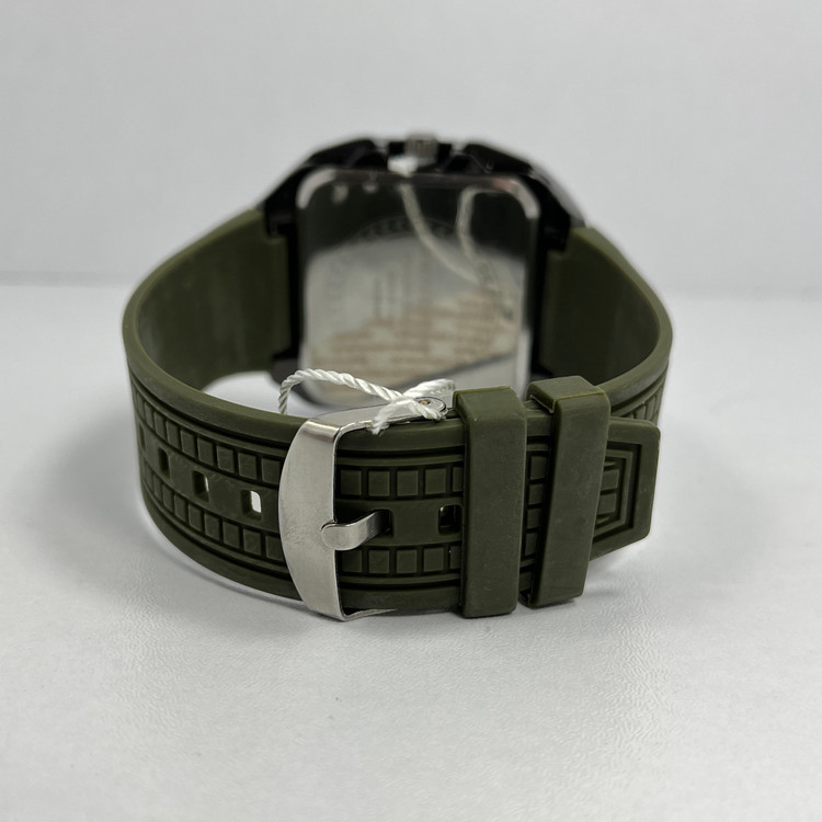این ساعت فوقالعاده خاص و جذاب، ترکیبی از طراحی مدرن و استایل اسپرت رو به نمایش میذاره. صفحه مربعی با رنگ آبی چشمنواز، به همراه قاب فلزی مشکی که جلوهای قدرتمند و لوکس داره، بینظیر به نظر میرسه. بند سبز زیتونی ساعت هم کاملاً هماهنگ با طراحی جسورانهاش انتخاب شده و راحتی و دوام بالایی داره.