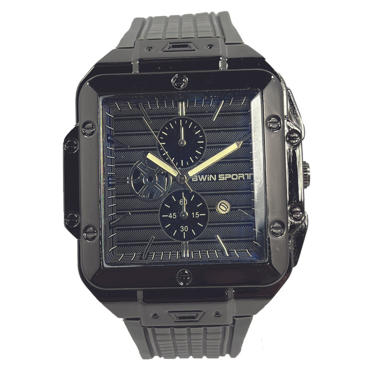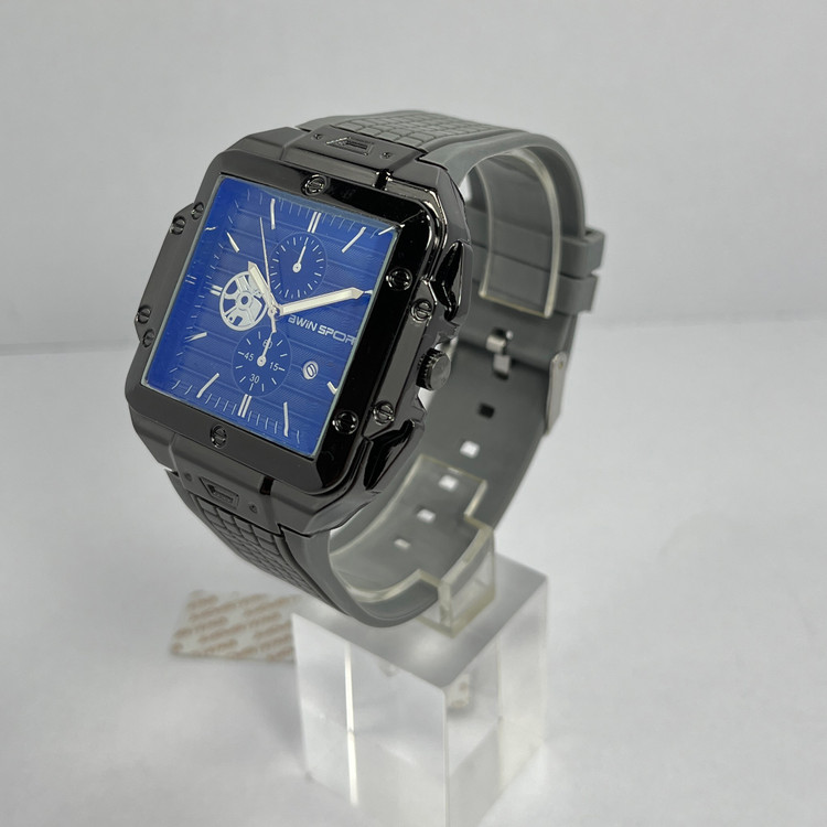 این ساعت بینظیر با طراحی مربعی و استایل اسپرت، ظاهری فوقالعاده شیک و خاص داره. ترکیب صفحه آبی تیره با جزئیات طلایی و قاب مشکی براق، جلوهای لوکس و مدرن ایجاد کرده. نمایشگرهای کوچک و عقربههای دقیق، این مدل رو هم از نظر عملکرد و هم زیبایی در سطح بالایی قرار میده.