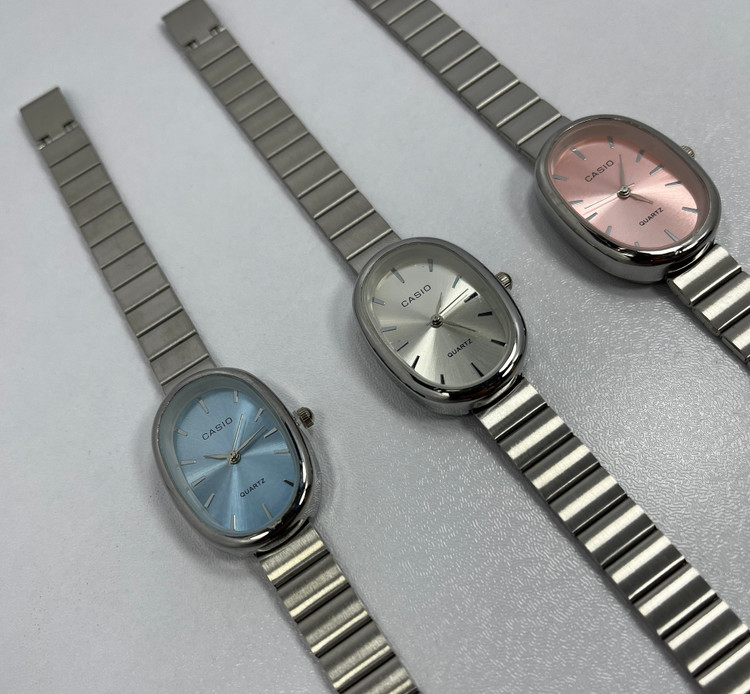 این مجموعه ساعتهای کاسیو، یه ترکیب فوقالعاده از سادگی، ظرافت و رنگهای جذابه. طراحی بیضی شکل صفحه این ساعتها، ظاهر خاص و متفاوتی ایجاد کرده که خیلی شیک و مینیمال به نظر میاد.