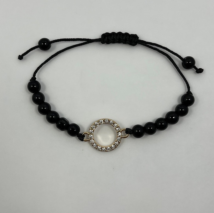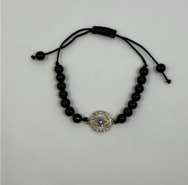 این دستبند از مهره های ساده ی مشکی رنگ و یک نخ مکرومه بافی باکیفیت تشکیل شده و ظاهر ساده که داره میتونه در کنار یک ساعت که بندش استیله به زیبایی ست بشه.