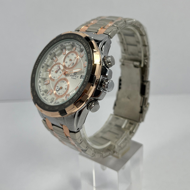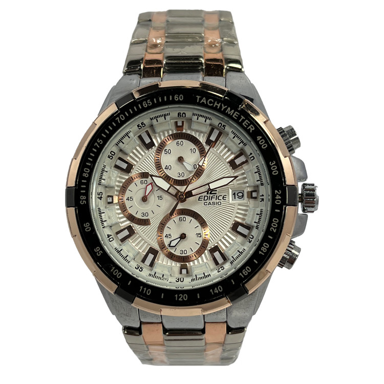 ساعت مچی مردانه کاسیو ادیفایس مدل EF-535، با طراحی کلاسیک و رنگبندی نقرهای و رزگلد، انتخابی مناسب برای استایلهای روزمره، نیمهاسپورت و کژوال است. صفحه گرد سفید رنگ با قطر 35 میلیمتر، ظاهری شیک و متناسب با مچ دست آقایان ارائه میدهد. بدنه و بند استیل رنگ ثابت، دوام بالایی داشته و قفل 3 تکه دکمهای ضامندار، ایمنی و راحتی استفاده را تضمین میکند. این ساعت با سه موتور فعال، ضدآب و دارای تقویم 31 روزه، عملکردی دقیق و کاربری آسان را فراهم میآورد. موتور کوارتز آن، دقت زمانسنجی بالایی را ارائه میدهد.
