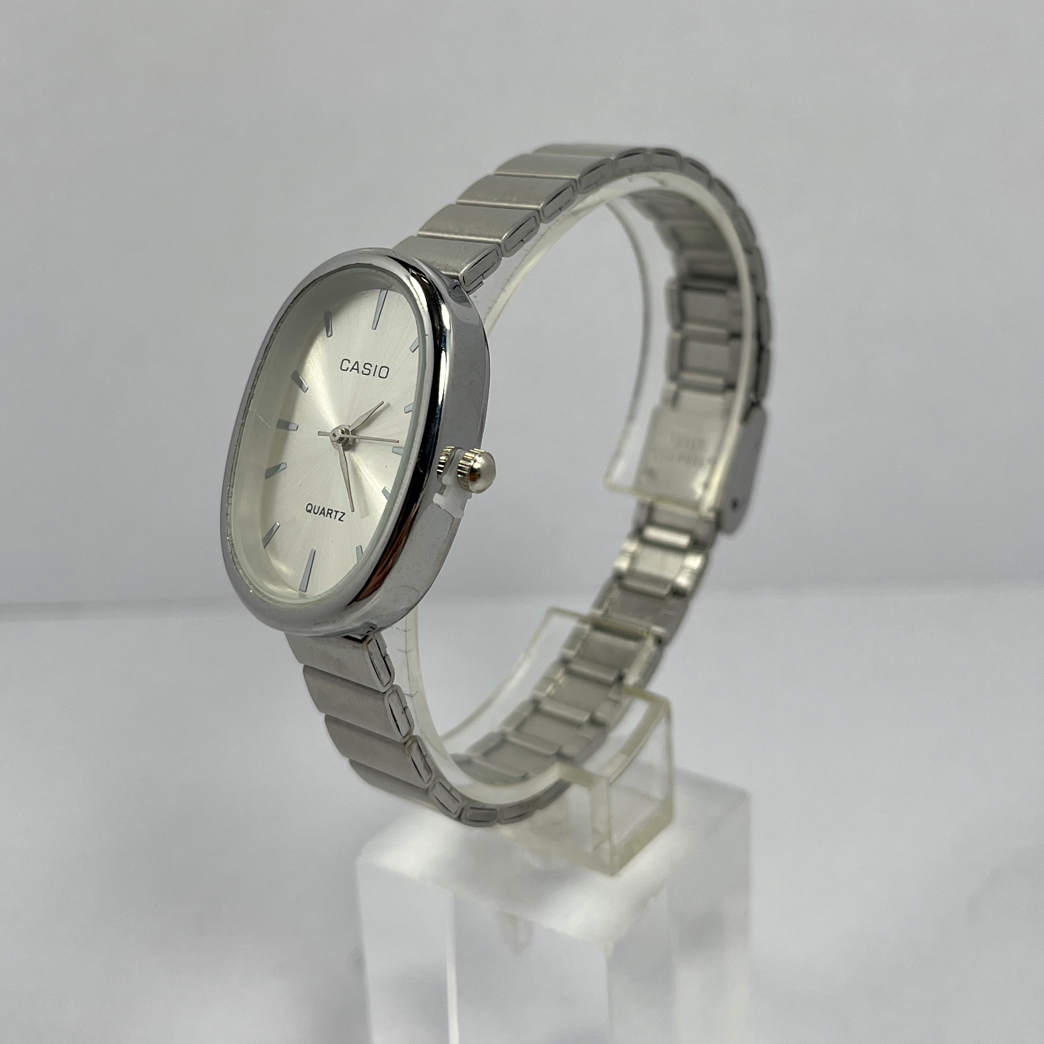 این کاسیوی زیبا نمایشی فوقالعاده از سادگی، ظرافت و رنگهای جذابه. طراحی بیضی شکل صفحه این ساعتها، ظاهر خاص و متفاوتی ایجاد کرده که خیلی شیک و مینیمال به نظر میاد.