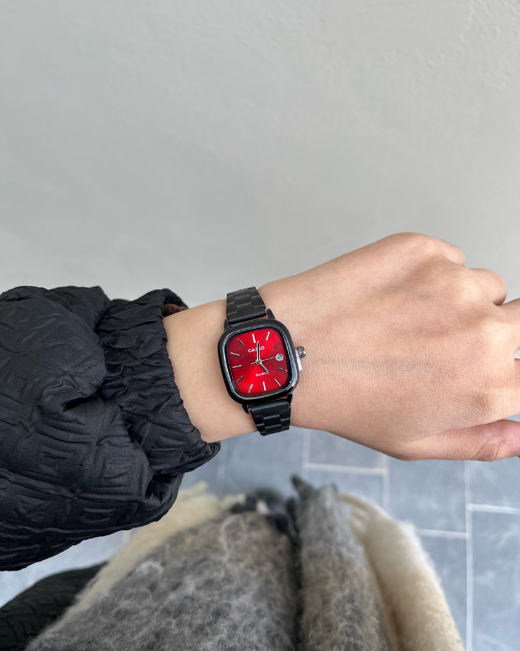 این ست زیبا با طراحی هماهنگ و خاص، انتخابی فوقالعاده برای زوجهاییست که به استایل کلاسیک و شیک اهمیت میدهند. ترکیب رنگ مشکی با صفحهی زرشکی براق جلوهای خاص و مدرن به این مدل داده. هر دو ساعت دارای موتور کوارتز دقیق و نمایشگر تاریخ هستند. مناسب برای استفاده روزمره یا هدیهای خاص و ماندگار.